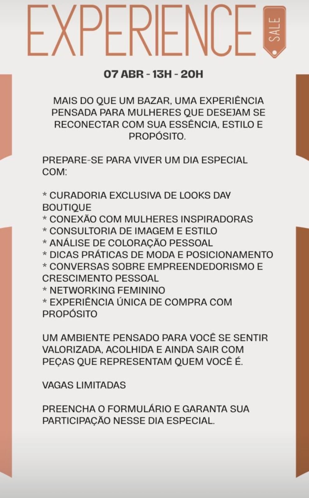 O diferencial do Experience Day está justamente na sua construção: não se trata apenas de um evento de moda, mas de uma experiência estratégica que conecta imagem, comportamento e negócios. Um espaço onde o networking feminino ganha força, criando conexões reais e oportunidades concretas.